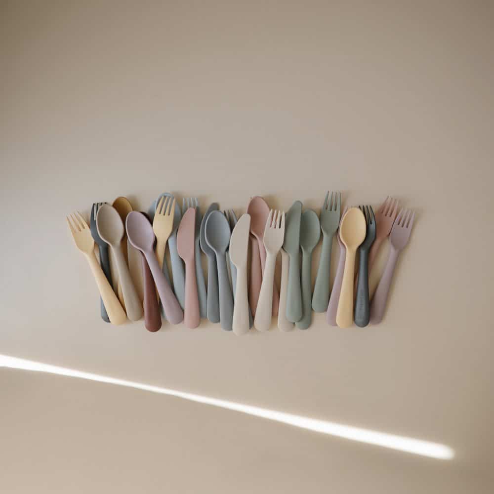 Štýlová a praktická súprava príborov z polypropylénového plastu od Mushie, navrhnutá s ohľadom na tý...zobrazit více