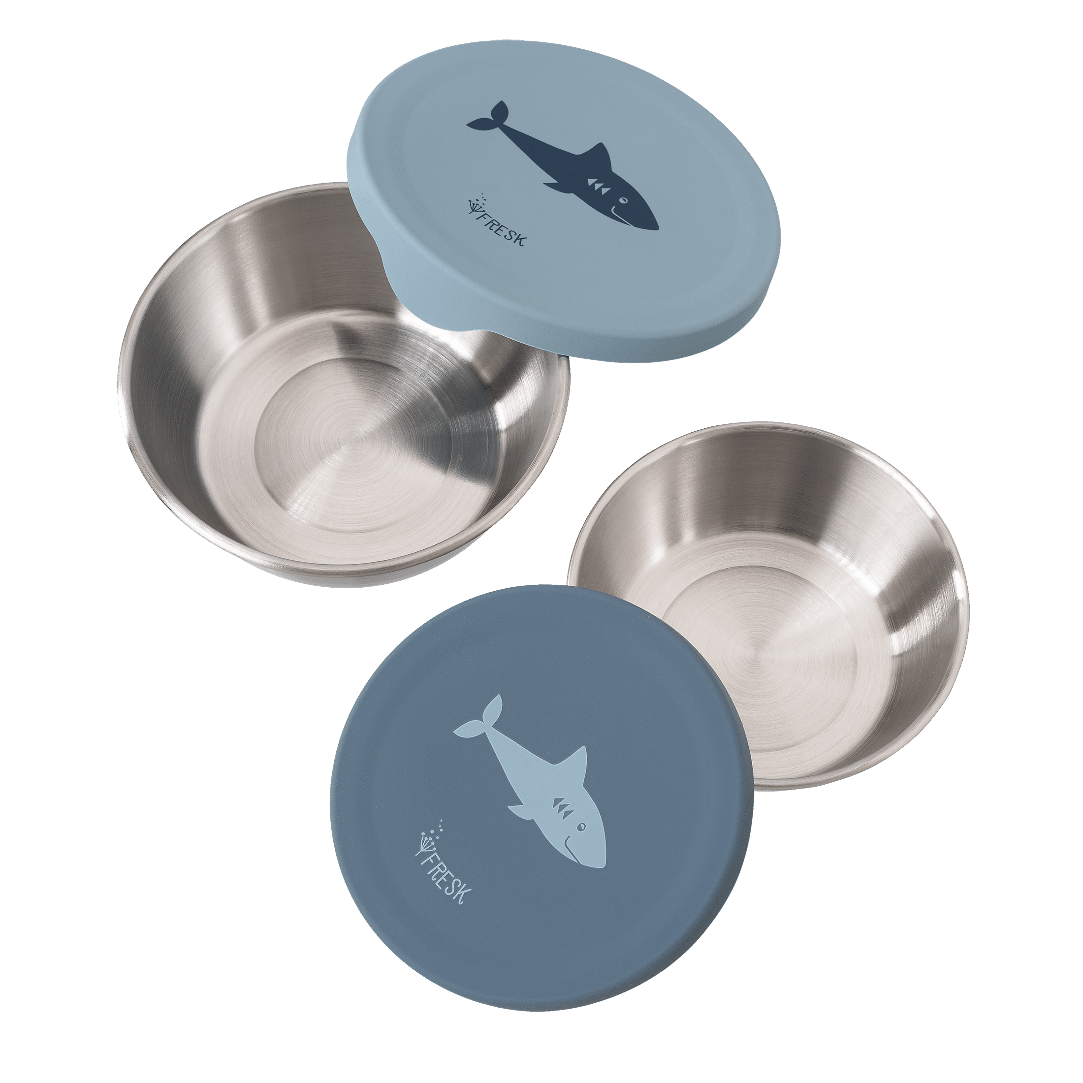 Dve dózy sú vyrobené z pevnej nehrdzavejúcej ocele a majú praktické silikónové viečka. Oceľové dno zabezpečuje, že nenaťahujú farbu ani vôňu z potravín, a flexibilné silikónové viečko ľahko otvoria aj malé detské rúčky.