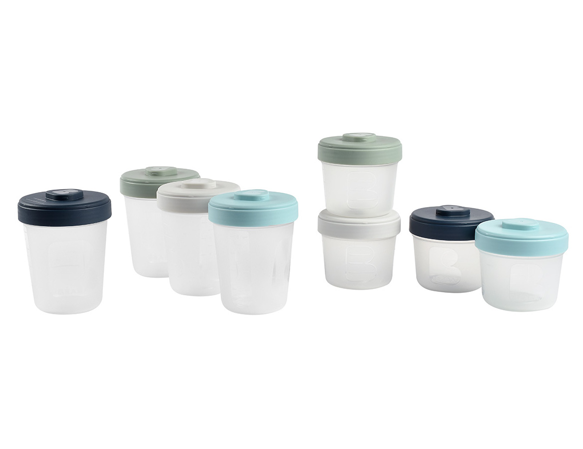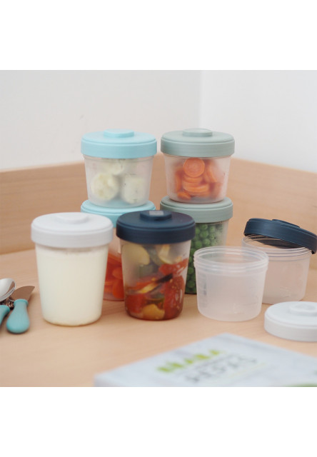 Sada kelímků Beaba na dětskou stravu z vysoce kvalitního polypropylenu s hermeticky uzavíratelným víčkem. Jídlo v kelímcích lze zamrazit či uložit do lednice a následně ohřívat v mikrovlnné troubě, ohřívačce nebo v Babycooku. Speciálně navržené víčko a dno kelímku umožňuje kelímky na sebe zacvaknout, což usnadňuje jejich uložení do lednice či mrazáku.