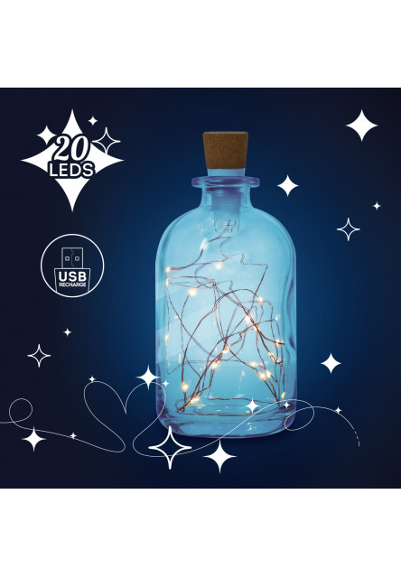 Svetelná dekorácia do fliaš Legami String Lights For Bottles pre útulnú výzdobu vašej domácnosti. Jednoducho vložte svetlá do prázdnej fľaše a zasuňte zátku na konci do hrdla. USB je zakryté korkovým koncom zástrčky.