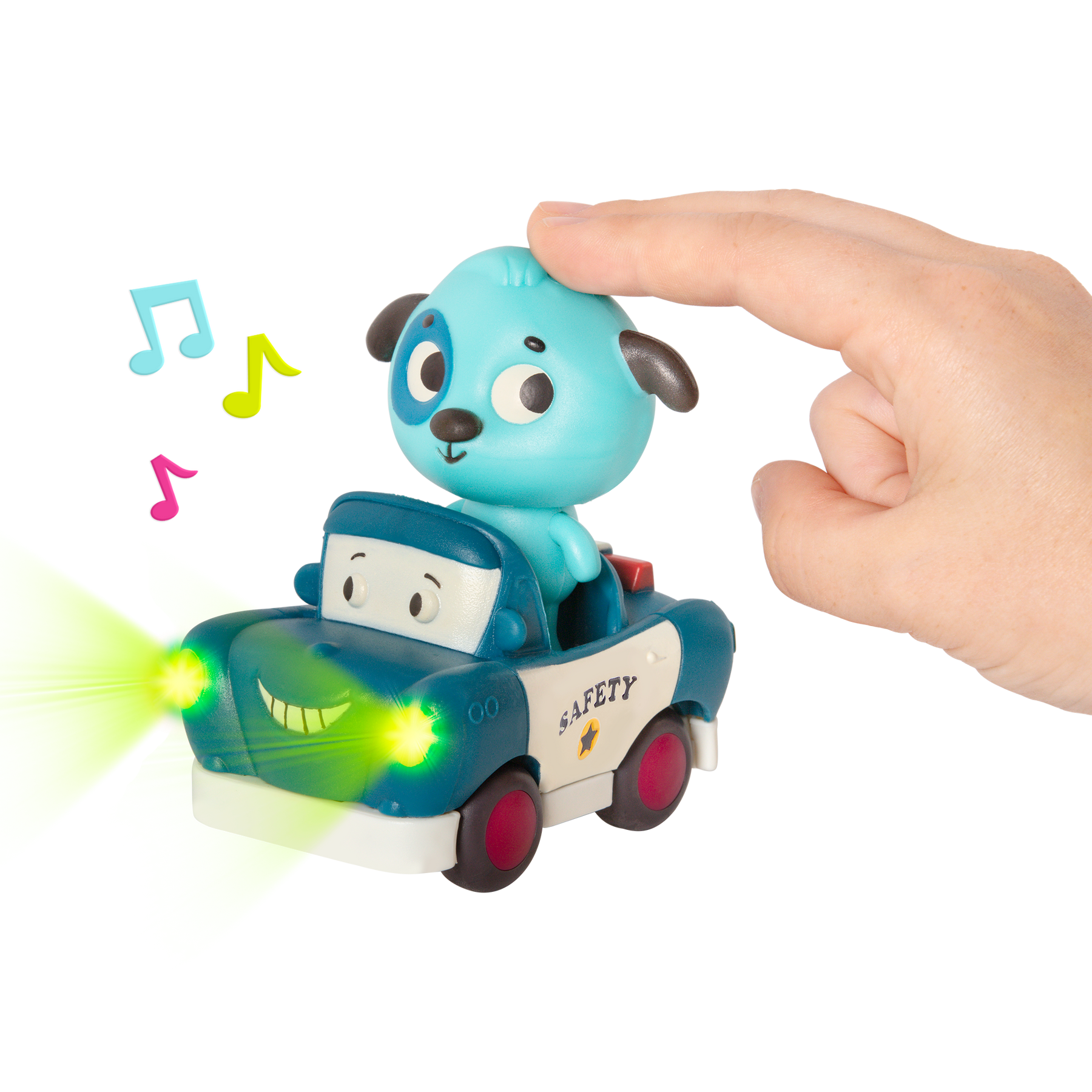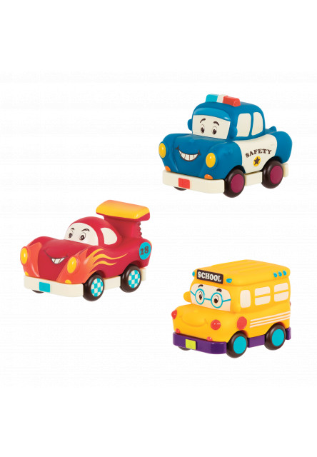 Veselá autíčka pro nejmenší mají roztomilé řidiče v podobě kočičky, pejska a žabičky. Zvířátka jsou vyjímatelná a můžou si auta, která řídí, vyměňovat! Po zmáčknutí zvířátka usazeného v autě se ozvou zvuky a autíčko svítí.