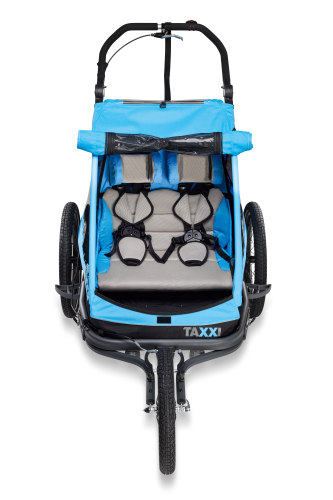 Cyklovozík TaXXi Elite 2 určený pre 2 deti so širokospektrálnym zameraním je vhodný pre druhy športu ako je bicyklovanie, beh, in-line korčuľovanie alebo aj prechádzky a turistika. V balení cyklovozíka nájdete – nastaviteľnú ručnú brzdu, set na kočík, bicykel a beh. Cyklovozík má precízne pruženie, ktoré zabezpečí komfortné cestovanie a dokáže eliminovať nerovnosti na cestách a mimo ciest. Vďaka veľkým bočným oknám, môže dieťa vidieť okolitý svet počas jazdy. Komfortné sedenie s 5 bodovým magnetickým pásovým systémom zabezpečuje, aby bolo dieťatko v bezpečí počas celej jazdy. Jednoduché čistenie zabezpečuje odnímateľná rohož.