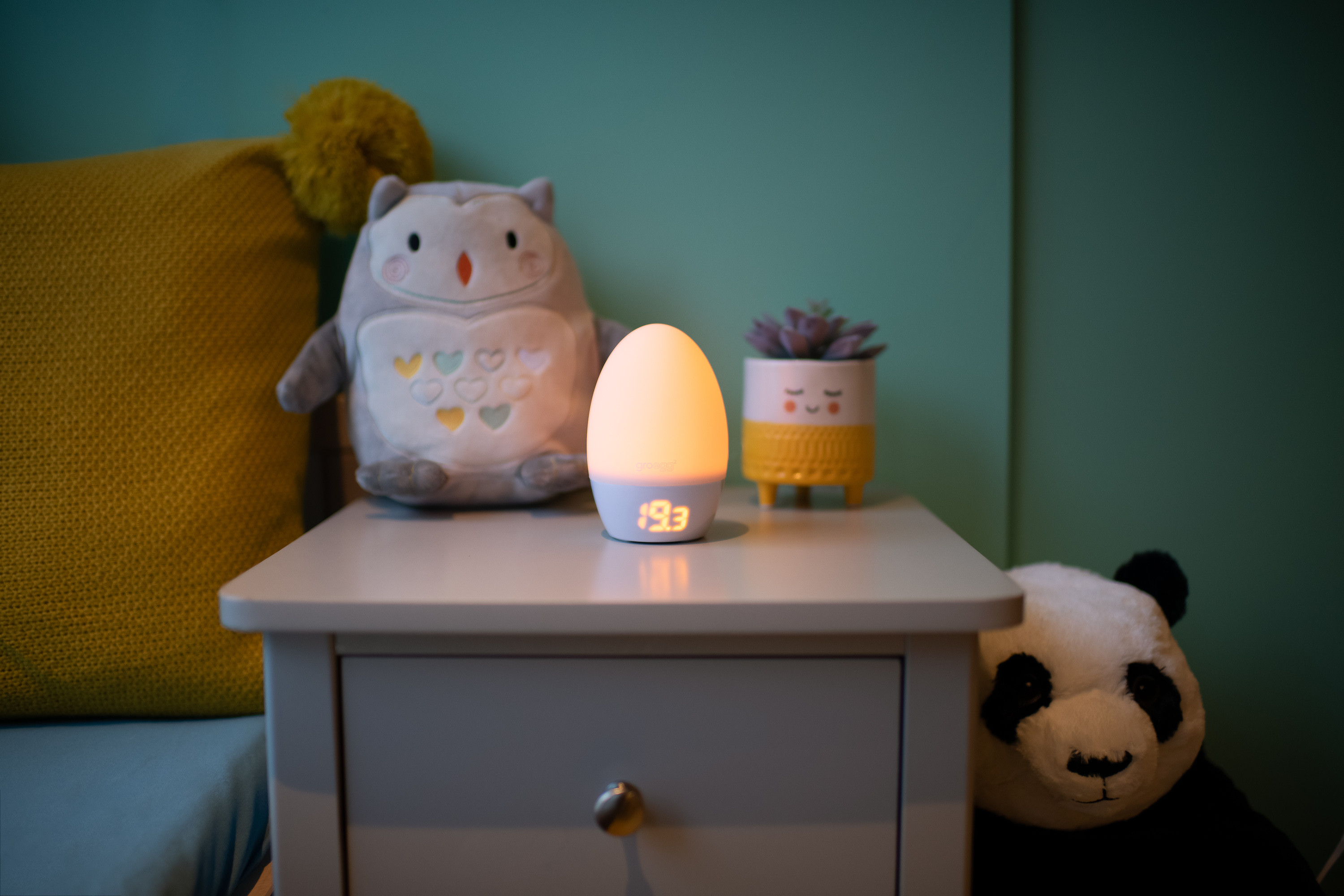 Unikátní teploměr a noční světlo v jednom vám usnadní kontrolu nad teplotou v dětském pokoji, která je důležitá pro zdravé spaní dítěte. Vajíčko mění barvu dle teploty v místnosti, takže jedním pohledem i v noci poznáte, jaká je aktuální úroveň teploty. Přesnou teplotu zobrazuje digitální LCD displej.