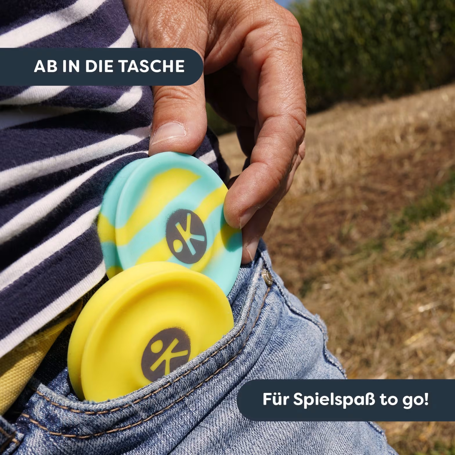 Objavte Mini-Frisbee zo silikónu, ktoré predstavujú dokonalú kombináciu vreckovej veľkosti a maximálnej hernej zábavy. Tieto extra malé lietajúce disky sú navrhnuté tak, aby sa zmestili do každého vrecka, vďaka čomu sú okamžite pripravené na spontánnu akciu v parku, na pláži alebo počas kempovania. Disky sú vyrobené z mäkkého a flexibilného silikónového materiálu, čo zaručuje bezpečný priebeh hry nielen vonku, ale aj v interiéri. Ich sýty, farebne intenzívny dizajn zaisťuje, že disky po dopade vždy rýchlo a ľahko nájdete. Vďaka svojej ohybnosti a ľahkosti sú ideálne na predvádzanie štýlových trikov a nečakaných letových manévrov, ktoré oživia každý voľný čas s priateľmi. Obsah balenia: praktické dvojbalenie (2 kusy) Materiál: mäkký a pružný silikón Dizajn: farebne intenzívne prevedenie pre rýchle hľadanie Formát: extra malý a šikovný vreckový rozmer (Pocketformat) Využitie: vhodné do exteriéru aj interiéru Vek: 4+