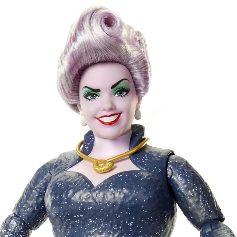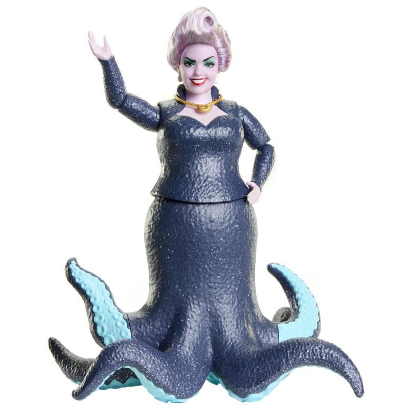 Preskúmajte čarovný svet Malé morské víly novým spôsobom! Bábika zlá morská čarodejnica je inšpirovaná hraným filmom od spoločnosti Disney Malá morská víla. Bábika má oblečenie z mäkkého materiálu s potlačou, odnímateľný náhrdelník, náušnice a rafinovane tvarované trblietavé chápadlá s modrou farbou na spodnej strane.