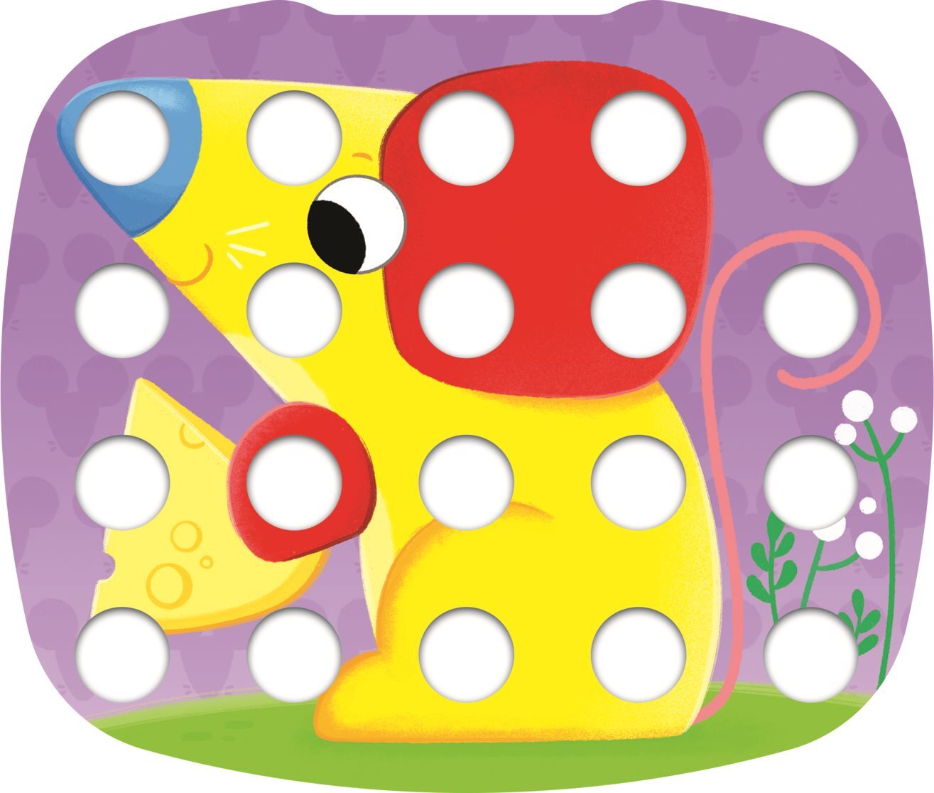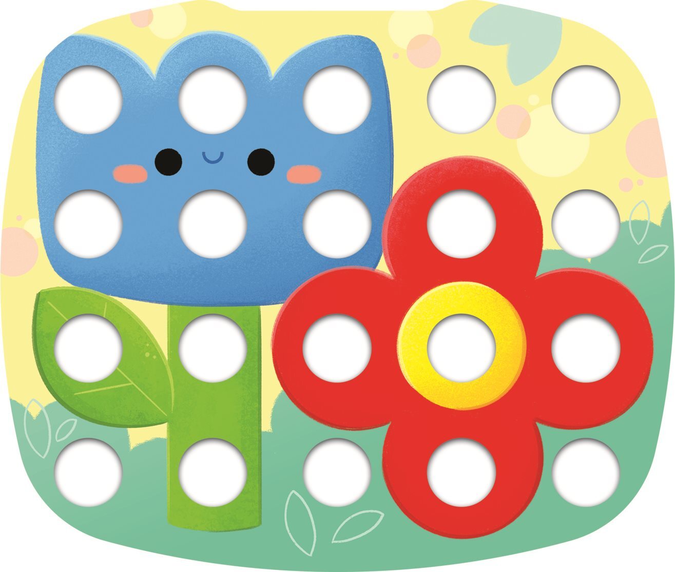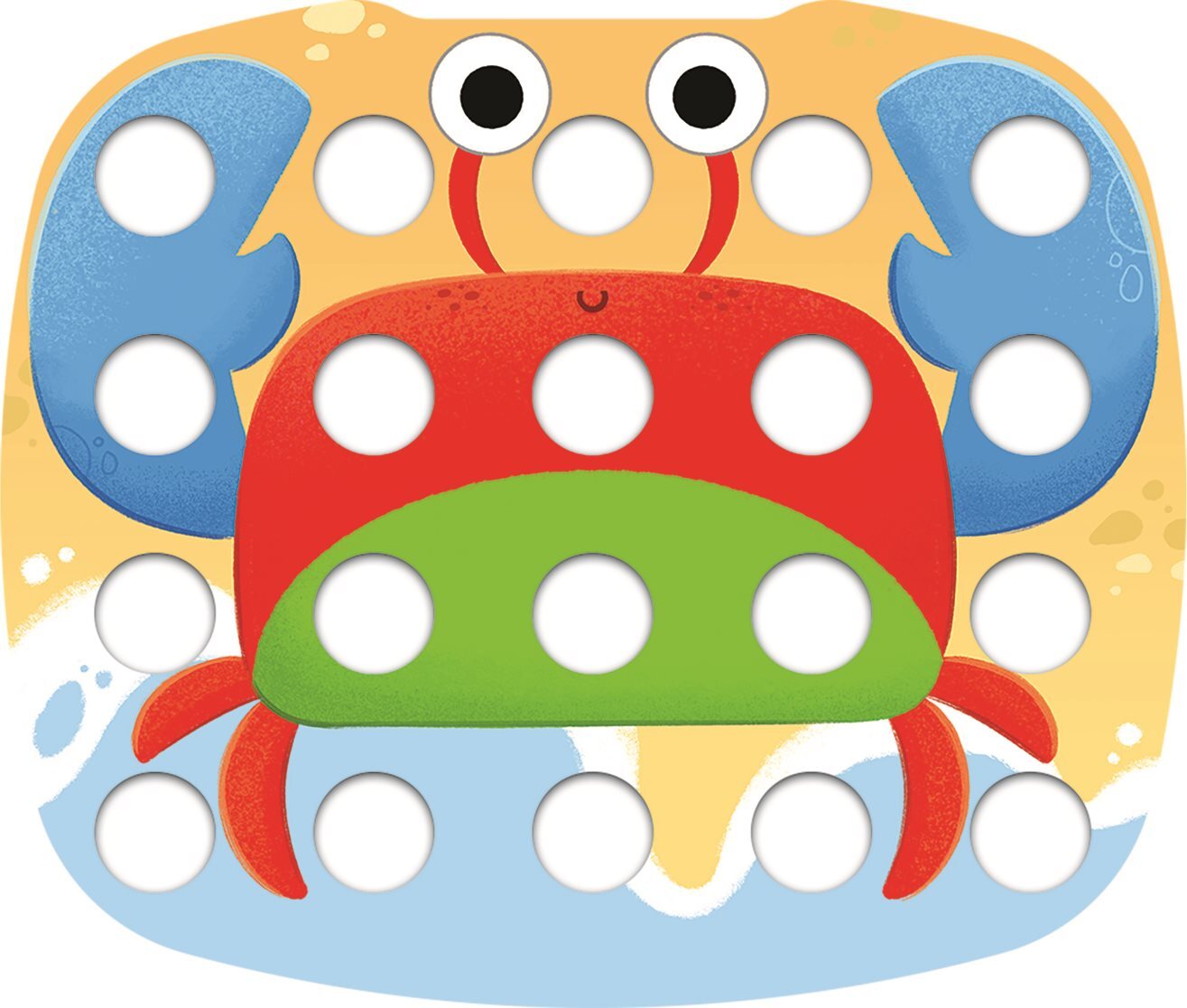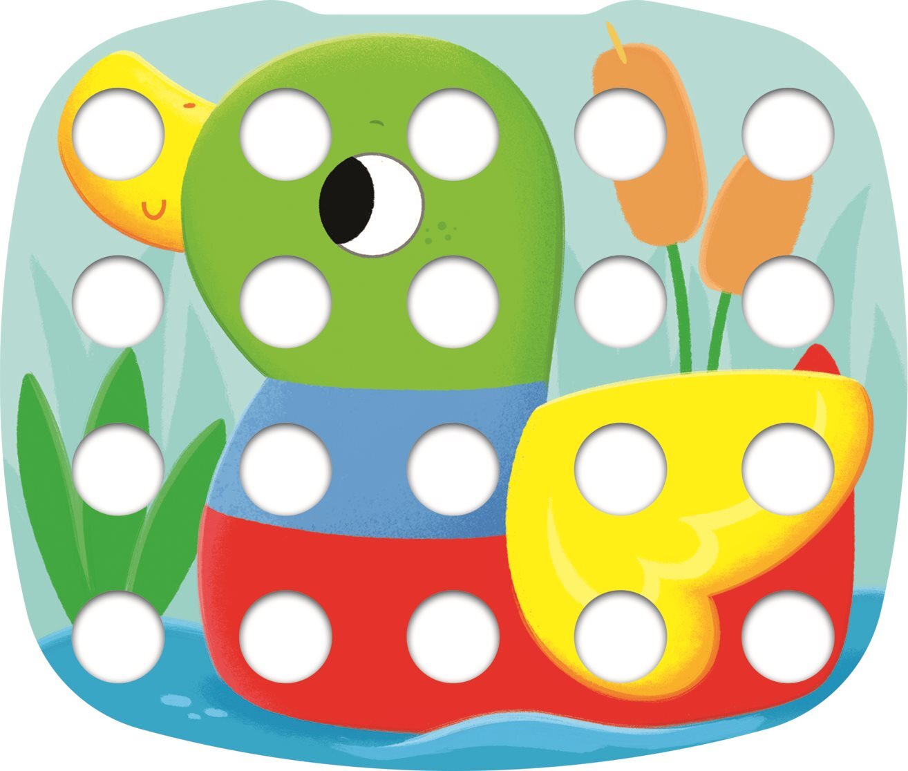 S farebnou mozaikou Baby Color Sorter od výrobcu Trefl sa deti zábavnou formou učia rozoznávať najdôležitejšie farby a priraďovať ich k sebe. Šesť obojstranných predlôh s obrázkami primeranými veku dieťaťa pozývajú malých hráčov, aby ich obložili farebnými gombíkmi. Gombíky sú extra veľké a deti ich ľahko zvládnu pripevniť na doštičku s otvormi. Hra prispieva k rozvoju jemnej motoriky a vnímania. A takto sa hrá:1. Vyber si obrázok.2. Umiestni obrázok na doštičku s otvormi.3. Prikladaj gombíky podľa farieb na obrázku. Obsah balenia: 24 farebných zacvakávacích gombíkov, 1 doštička s otvormi a madlom, 6 predlôh s obrázkami (obojstranne potlačené) Vhodné pre deti od 1 roku