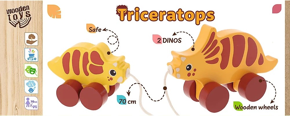 Dinos Triceratops - súprava dinosaurov na kolieskach so šnúrkami na ťahanie zavedie deti do fascinuj...zobrazit více
