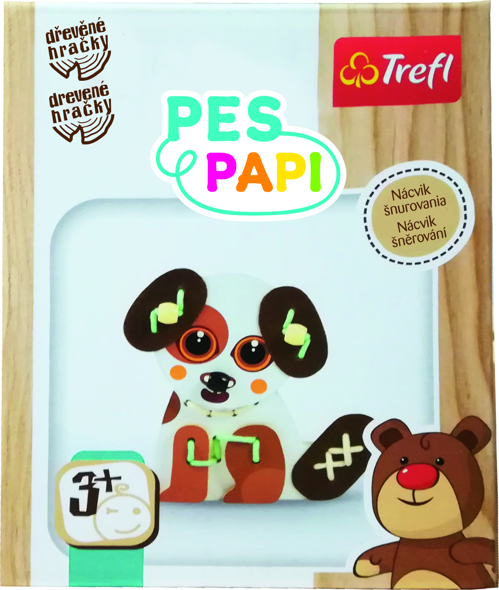 Drevená hračka na nácvik šnurovania, rozmery balenia v mm: 120x150x45 Ideálna pre rozvoj manuálnej zručnosť a precvičovanie trpezlivosti dieťaťa. Hračka rozvíja detské myslenie, kreativitu a jemnú motoriku. Materiály použité pri výrobe hračky majú požadované certifikáty a sú natreté netoxickými farbami. Vhodné pre deti od 3 rokov. Hračky sú navrhnuté tak, aby slúžili deťom vo všetkých fázach ich vývoja. Séria obsahuje celú radu hračiek rôznych kategórií, takže sa v nej nájde niečo pre každého. Predstavujeme vám medvedíka, nášho sprievodcu touto sériou. Je to postavička, ktorá prekonáva priepasť medzi generáciami. Medvedík berie rodičov na sentimentálny výlet do ich detstva, kedy sa hrali s drevenými kockami a ich deti pozýva do pestrofarebného sveta zábavy.
