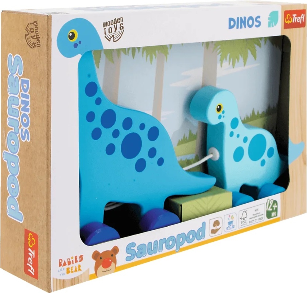 Dinos - Sauropod je úžasná súprava dinosaurov na kolesách, ktorá zavedie deti do čarovného sveta rozprávky Bábätko a medveď. Táto súprava prináša dvojnásobnú zábavu s veľkým, pôsobivým dinosaurom s rozmermi 16,6 cm x 16,8 cm x 5,5 cm a menším s rozmermi 10,9 cm x 11,3 cm x 5,5 cm. Oba dinosaury sú na kolieskach a dajú sa jednoducho stiahnuť pomocou šnúrok. Toto je perfektný darček pre mladých milovníkov dinosaurov a fanúšikov kresleného filmu Bábätko a medveď, ktorý zaručuje hodiny tvorivej zábavy.