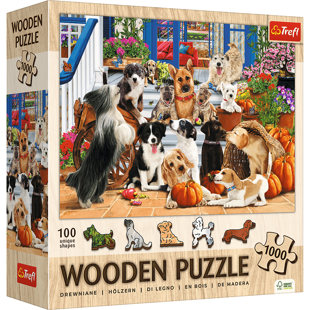 Hľadáte perfektné puzzle pre nadšencov puzzle? Vyberte si toto drevené puzzle s 1000 dielikmi, v ktorom je skupinka psov relaxujúcich pred domom! Toto jedinečné puzzle vám umožní vytvoriť obrázok s rozmermi 51,9 x 37,5 cm, ktorý poteší svojimi farbami. Puzzle sú vyrobené z vysoko kvalitného dreva, čo zaručuje odolnosť a radosť zo skladania. Navyše, z dôvodu ochrany životného prostredia je obal vyrobený výlučne z kartónu – žiadny plast! Nie sú to obyčajné puzzle – sada obsahuje: 1000 nepravidelných prvkov, ktoré poskytujú dodatočnú výzvu a zábavu, vrátane až 100 figúrok v tvare zvierat, ktoré dodávajú hádanke charakter a premieňajú každé skladanie na dobrodružstvo.