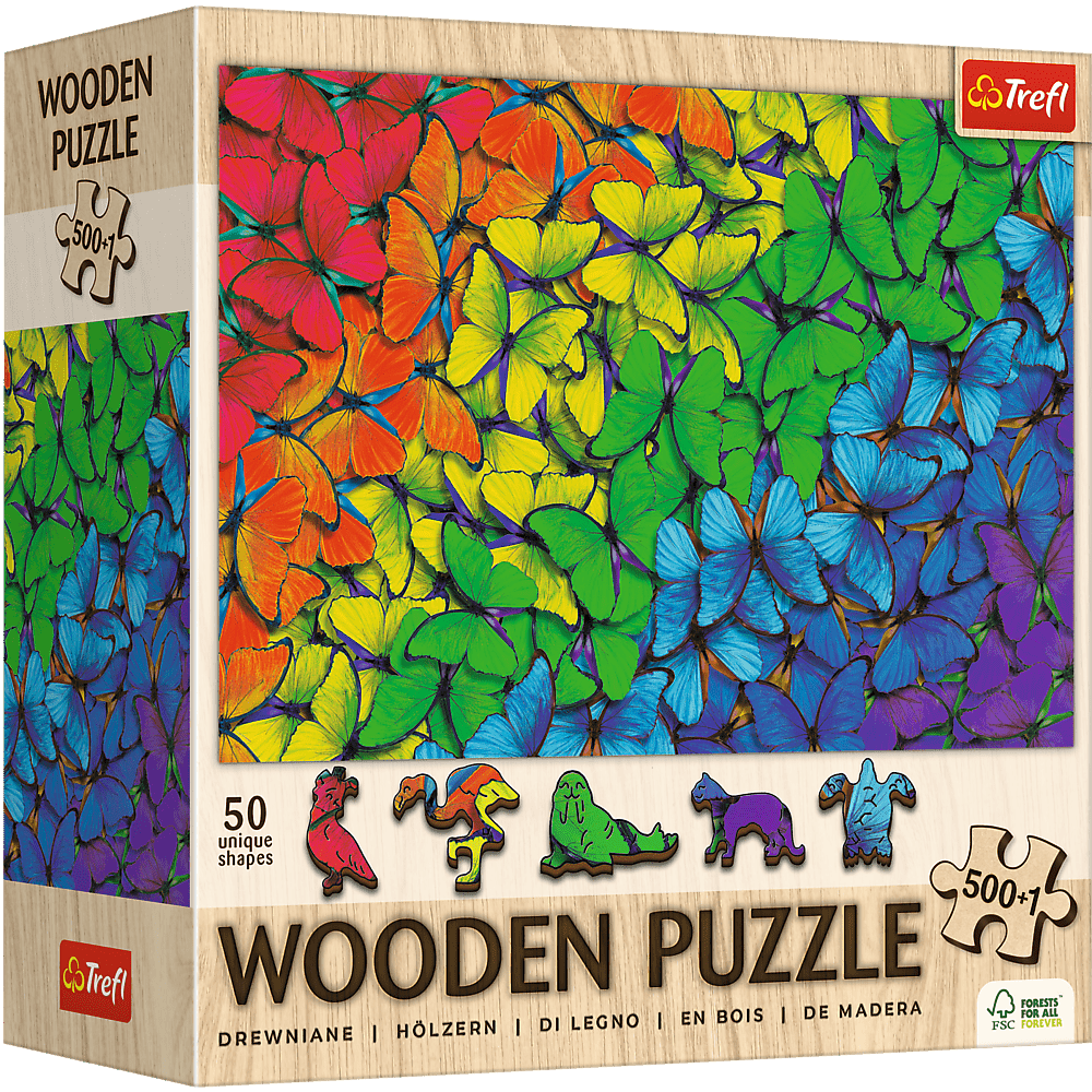 Trefl Drevené puzzle 501 - Dúhové motýle