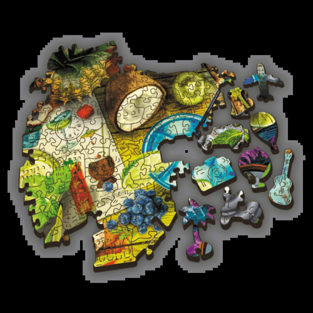 Drevené obojstranné puzzle so špeciálne tvarovanými dielikmi. Puzzle je vyrobené zo silnej drevovláknitej dosky a vyrezané laserom, vďaka čomu sú okraje hladké a dieliky do seba ľahko zapadajú. Vysoká kvalita a precízne spracovanie laserom, až 50 unikátne tvarovaných dielikov, ostatné dieliky v nepravidelných tvaroch, puzzle je obojstranné – z jednej strany obrázok, z druhej strany vzor.