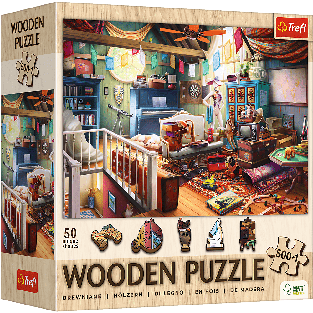 Drevené obojstranné puzzle so špeciálne tvarovanými dielikmi. Puzzle je vyrobené zo silnej drevovláknitej dosky a vyrezané laserom, vďaka čomu sú okraje hladké a dieliky do seba ľahko zapadajú. Vysoká kvalita a precízne spracovanie laserom, až 50 unikátne tvarovaných dielikov, ostatné dieliky v nepravidelných tvaroch, puzzle je obojstranné – z jednej strany obrázok, z druhej strany vzor.