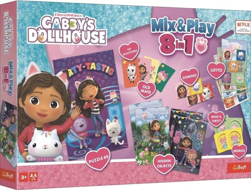 Mix&Play je sada 8 hier, ideálna pre voľný čas a cestovanie, ktorá spríjemní každú chvíľku. Hranie hier pomáha deťom aj dospelým precvičovať pamäť, trénovať sústredenie a zlepšovať postreh.Sada obsahuje obľúbené hry ako Puzzle, Lotto, Pexeso (Memo), Domino, Čierny Peter, a ďalšieBalenie obsahuje: Puzzle s 60 dielikmi, 4 obojstranné podložky, 30 pexeso kartičiek, 21 domino kartičiek, 28 herných kariet, pravidlá.