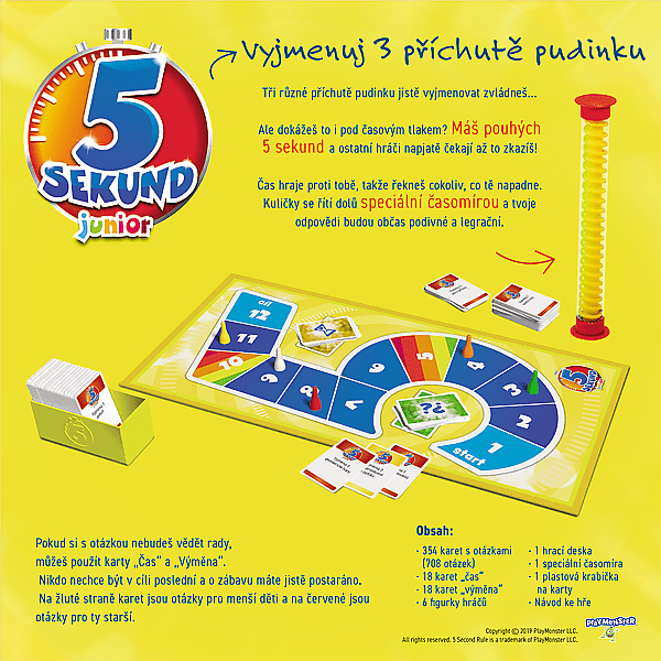 Detská verzia hry, ktorá vás naučí rýchlo myslieť a hovoriť! V tejto hre je vašim cieľom správne odpovedať na čo najviac otázok. Tri rôzne príchute pudingu určite vymenovať zvládnete, ale dokážete to aj pod časovým tlakom? Máte iba 5 sekúnd a ostatní hráči netrpezlivo čakajú na vaše zaváhanie! Hra obsahuje kartičky s otázkami v dvoch farbách- žlté pre mladšie deti a červené pre staršie. Vek 6+
