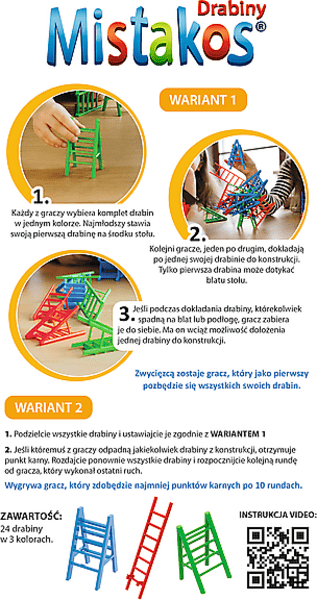 Kultová hra na obratnosť, v úplne novom vydaní! Ukladajte postupne farebné rebríky na seba tak, aby nespadli.