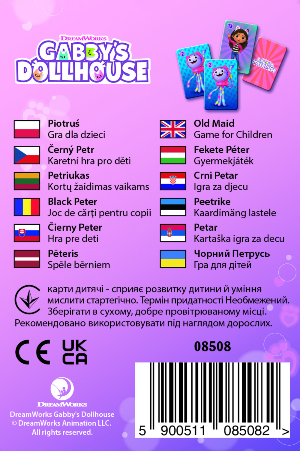 Tradičná kartová hra Čierny Peter baví deti už po generácie. Všetkých 25 kariet sa rozdá zúčastneným hráčom tak, aby nebolo vidieť, kto Čierneho Petra dostal. Následne hráči odložia rovnaké dvojice kariet na stôl (podložku) a zvyšné karty si rozložia v ruke. Hráči si ponúkajú karty v kruhu a tvoria rovnaké dvojice. Prehrá ten, komu zostane v ruke Čierny Peter. Obsah balenia: 25 kariet v papierovej krabičke