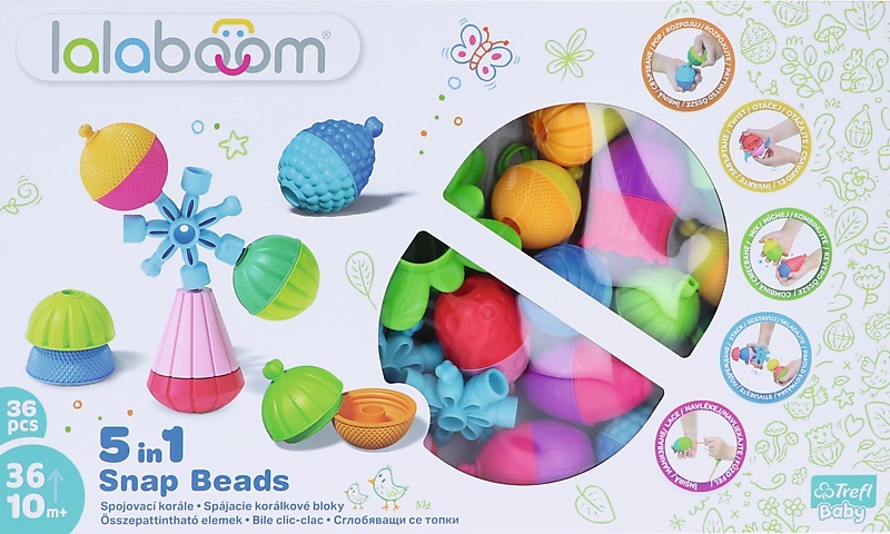 Súprava spájacích korálkových blokov Lalaboom je výnimočná senzorická hračka. Spájacie korálkové bloky stimulujú rozvoj dieťaťa, ktoré sa učí vnímať a interpretovať vnemy pochádzajúce z okolitého prostredia. Pomáha rozvíjať všetky zmysly, predovšetkým zrak, sluch a hmat. Bloky Lalaboom stimulujú správny rozvoj dieťaťa a umožňujú využívať rôzne varianty rozvojovej hry. Objavujte svet s Lalaboom! Bloky sa dajú navzájom spájať, pripájajúc jeden blok k druhému. Spájacie korálkové bloky sa dajú rozkladať a skladať. Dajú sa ľubovoľne kombinovať, a tak vytvárať rôznorodé farebné konštrukcie. Jediným ohraničením je vlastná predstavivosť! Vďaka hre so spájacími korálkovými blokmi sa dieťa učí vo vlastnom tempe. Spájacie korálkové bloky s rôznymi farbami, tvarmi a štruktúrami poskytujú rôznorodé dotykové vnemy. Neobyčajný výrobok, ktorý rastie spolu s dieťaťom a podporuje jeho rozvoj na viacerých úrovniach. Pomáha zdokonaľovať presnosť pohybov rúk, dôkladnosť uchopovania prstami, a tiež otočné pohyby zápästí. Umožňuje tiež cvičiť zrakovo-pohybovú koordináciu, rozvíja kreativitu a priestorovú predstavivosť. Hračky, ktoré podporujú senzorický rozvoj dieťaťa! Spájacie korálkové bloky stimulujú rozvoj senzorickej integrácie, ktorá je spätá s procesom organizácie zmyslových vnemov. Náš mozog funguje tak, aby dokázal vnímať čo najviac vnemov, a formuje sa pod vplyvom týchto skúseností. Preto je dôležité, aby hračky poskytovali rôznorodé dotykové, zrakové či sluchové zážitky. Musia tiež umožňovať rôznorodú manipuláciu s predmetmi. Séria Lalaboom spĺňa tieto potreby. Zaručuje dieťaťu kontakt s predmetmi s rozličnými tvarmi a štruktúrami. Malé dieťa počas hry so spájacími korálkovými blokmi rozvíja svoje schopnosti vnímania vnemov z dlaní. Inšpirované Montessori Súpravy Lalaboom sú inšpirované metódou Montessori, ktorá hlása, že deti sa učia predovšetkým konaním, skúsenosťou. Veľký dôraz sa kladie na presnosť, systematickosť a samostatnosť. Spájacie korálkové bloky Lalaboom vznikli, aby podporovali všestranný rozvoj detí, príslušne podľa individuálnych možností a schopností každého dieťaťa. Bezpečnosť je najdôležitejšia! Spájacie korálkové bloky sú vyrobené z bezpečného plastu. Sú určené pre deti vo veku už od 10 mesiacov. Každá hračka Lalaboom musí prejsť sériou veľmi prísnych testov. Výrobky Lalaboom spĺňajú všetky štandardy, ktoré platia v Európskej únii (CE), Spojených štátoch (ASTM), Kanade (SOR) a Austrálii (ISO). Bližšie informácie o výrobku: Hračka má certifikáty BPA FREE, PVC FREE, PHTHALATE FREE. Ak je súčasťou súpravy hračky šnúrka, má menej než 20 cm, a plastová časť na navliekanie je elastická. Koráliky s rozmermi približne 7,5 x 5 x 5 cm. Hračky nemajú malé prvky, vďaka tomu pre malé deti nepredstavujú väčšie riziko. Vysoká kvalita zhotovenia a materiálov, trvácnosť a pevnosť. Ľahké čistenie, balenie a prenášanie. Hračka rastie spolu s dieťaťom! Vek 10 mesiacov je skvelý moment na: SPÁJANIE! POCITOVÉ POZNÁVANIE Dieťa približne vo veku 10 mesiacov objavuje, že spájacie korálkové bloky LALABOOM sa dajú navzájom spájať, upevňovať. Rôznorodé textúry nabádajú k novému objavovaniu. Vek 15 mesiacov je skvelý moment na: ZAKRÚCANIE: UČENIE OTVÁRANIA A ZATVÁRANIA Približne vo veku 15 mesiacov si dieťa začína všímať, že spájacie korálkové bloky sa dajú otvárať a zatvárať odkrútením a zakrútením. Dospelým sa to môže zdať samozrejmé, avšak pre malé dieťa je to užitočné cvičenie veľmi dôležitej motorickej zručnosti. Opakovanie tejto činnosti pozitívne ovplyvňuje rozvoj zručnosti. Vek 18 mesiacov je skvelý moment na: MIEŠANIE A SPÁJANIE Približne vo veku 18 mesiacov dieťa už dokáže vyberať náležité tvary a farby, ktoré navzájom mieša a spája. Vynikajúci spôsob, ako dieťa môže ukázať svoju kreativitu a to, čo sa mu páči. Môžete tiež dieťa požiadať, aby spájacie korálkové bloky náležite dopasovalo, čo zvyšuje schopnosť učenia sa a rozpoznávania tvarov a farieb. Vek 24 mesiacov je skvelý moment na: UČENIE STAVANIA A UKLADANIA Dieťa vo veku od 24 mesiacov už bude poznať rôzne možnosti spájania korálkových blokov LALABOOM. V tomto veku dokáže vytvárať rozličné pestrofarebné vlastné diela. Stavanie je veľmi dôležitou etapou rozvoja dieťaťa – zahŕňa v sebe schopnosť plánovania dopredu, využívať dostupný priestor a zavádzania vlastných nápadov, a súčasne dáva dieťaťu obrovskú spokojnosť. Vek 36 mesiacov je skvelý moment na: NAVLIEKANIE Deti môžu spájacie korálkové bloky LALABOOM pod dohľadom dospelého navliekať. Navliekanie predstavuje pre rozvoj dieťaťa viacero výhod. Je to prvý krok učenia písania. Táto činnosť zlepšuje jemnú motoriku dieťaťa, a tiež zlepšuje sústredenosť, presnosť a zrakovo-pohybovú koordináciu. V súprave: 30 dielov spájacích korálkových blokov, 2 kvetové lupienky, 2 spojky, 2 šnúrky na navliekanie Vek: 10 až 36 mesiacov.
