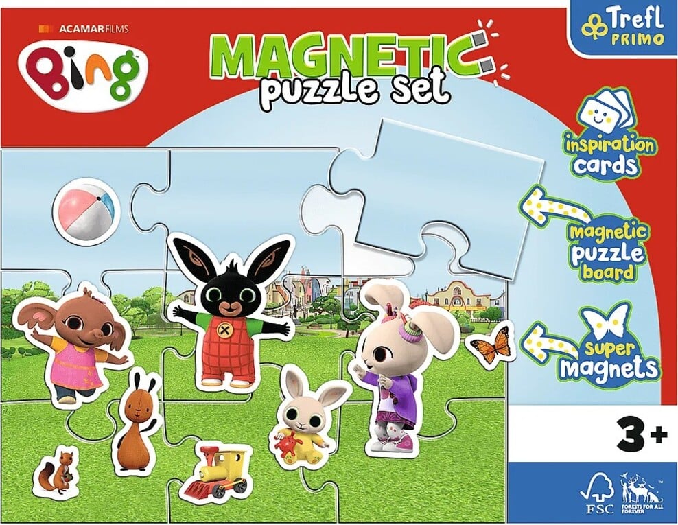 Puzzle zo série Trefl Primo predstavujú Funny World of Bing. Puzzle trénuje koncentráciu, zlepšuje manuálne zručnosti a zrakové vnímanie. Podporuje tiež rozširovanie vedomostí o okolitom svete. Ide o kreatívnu súpravu na hranie s magnetkami pre najmenšie deti. Možnosť aranžovania scén rozvíja kreativitu, samostatnosť a predstavivosť dieťaťa. Sada obsahuje aj karty s inšpiráciou na pretvorenie scén.