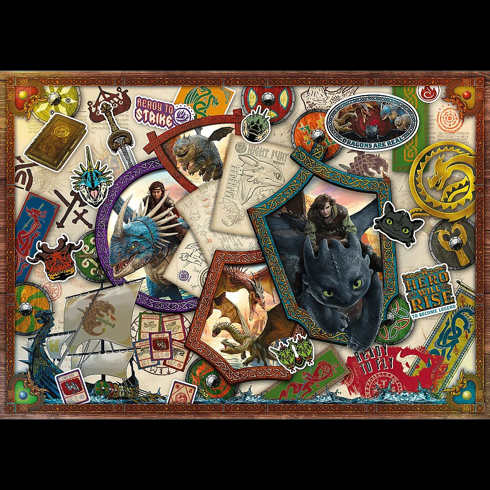 1 000- dielna skladačka Ako vycvičiť draka – Hrdinovia predstavuje jedinečnú koláž postáv z titulného filmu. Puzzle obsahujú 1000 dielikov. Rozmer zloženého obrázku: 683x480 mm