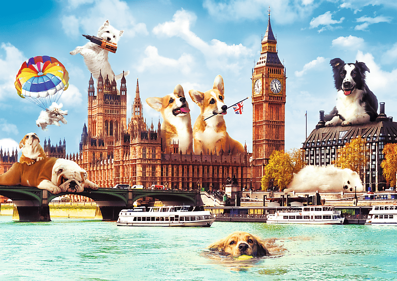 Trefl Puzzle 1000 dielikov - Psy v Londýne.Po položení sa vytvorí obrázok s rozmermi 68 x 48 cm. Použitie ekologických materiálov zaručuje vysokú kvalitu, sýtosť farieb a bezpečnosť pri stohovaní. Vek 12+
