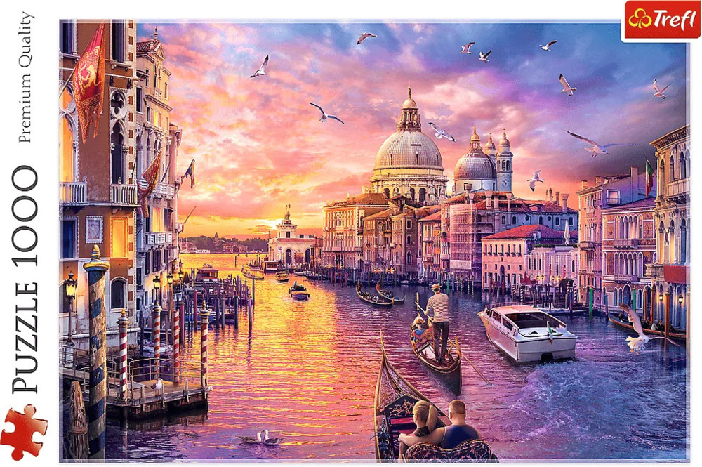 Puzzle Charms of Venice, pozostávajúce z 1000 dielikov, predstavuje romantický obraz s benátskym kanálom Grand Canal ako hlavnou postavou. Po ich usporiadaní vznikne obrázok s rozmermi 683x480 mm. Výrobok je vyrobený v Poľsku s použitím kvalitných ekologických materiálov. Špeciálny kalandrovaný papier odráža svetlo, čo uľahčuje stohovanie.