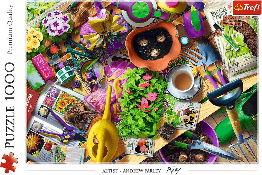 Puzzle Upratovanie záhrady zložené z 1000 dielikov predstavuje farebný obrázok, ktorý poteší nielen záhradkárov. Po ich usporiadaní vznikne obrázok s rozmermi 683x480 mm. Výrobok je vyrobený v Poľsku s použitím kvalitných ekologických materiálov. Špeciálny kalandrovaný papier odráža svetlo, čo uľahčuje stohovanie.