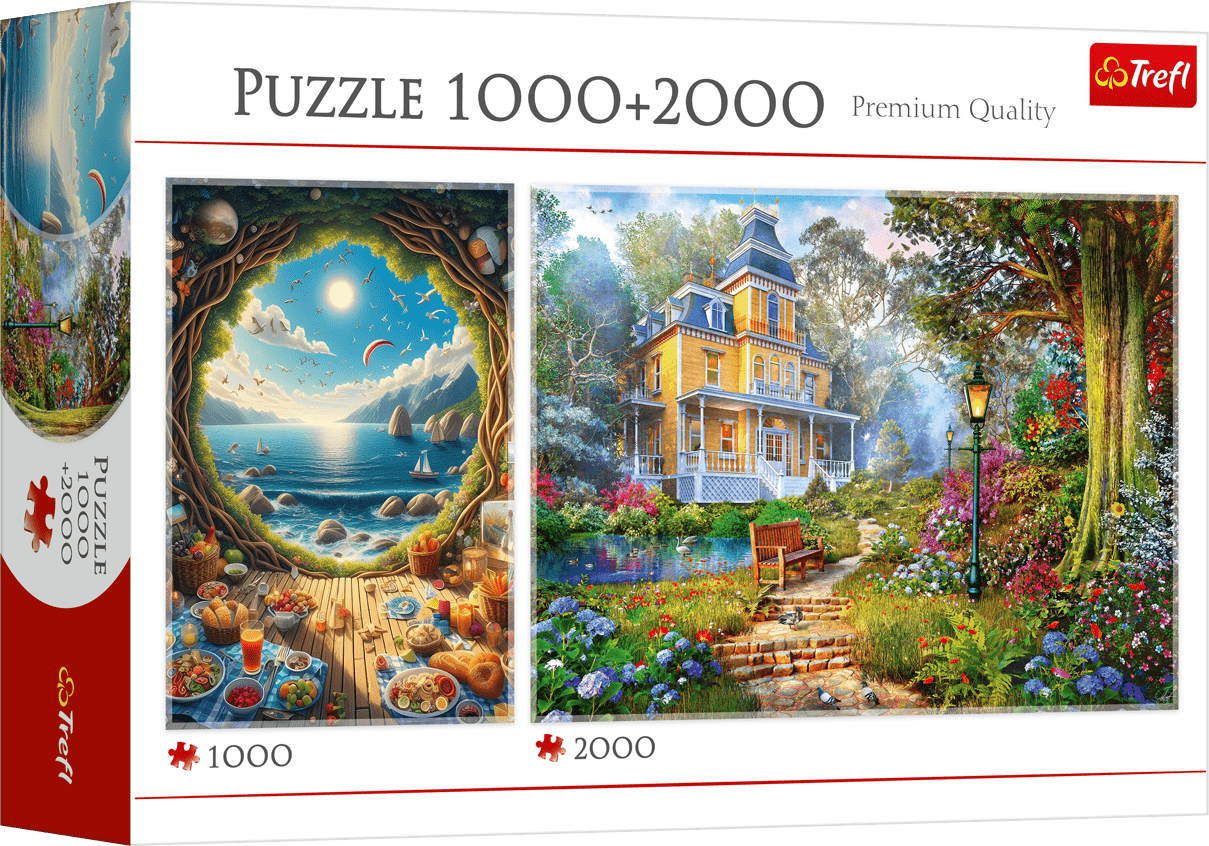 Komplet obsahuje dve balenia puzzle: 1000 dielikov, rozmer: 48 x 68 cm a 2000 dielikov, rozmer: 96 x 68 cm.