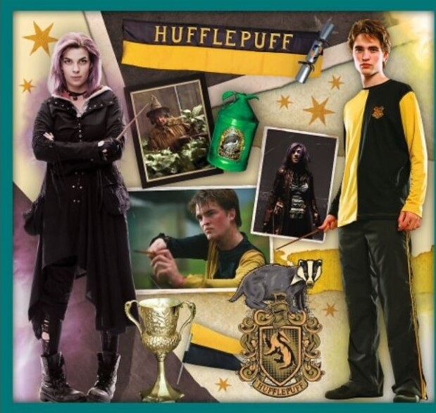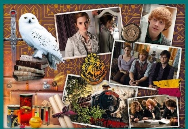 Puzzle zobrazuje hrdinov kultovej série filmov o Harrym Potterovi. Výrobok je vyrobený z kvalitných materiálov, s použitím špeciálneho kalandrovaného papiera odrážajúceho svetlo, ktorý uľahčuje pokládku. Výrobok bol vyrobený v Poľsku, na výrobu boli použité ekologické materiály. 329 prvkov, vrátane: 3 obrázkov so 48 prvkami, 3 obrázkov s 35 prvkami a 4 z 20 prvkov) Obrázky po skladaní, rozmery: 22,3 x 15,6 a 16,7 x 15,6 cm, Rozmery balenia: 40x27x6cm, Vhodné od 4 rokov