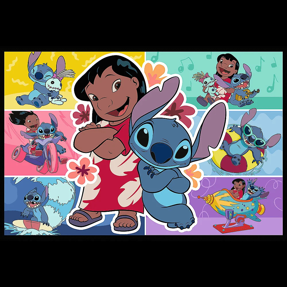 Puzzle 2x200 sú dve 200-dielne puzzle v jednom balení ! Radosť zo Stitcha je skladačka s farebnými kolážami postavičiek Lilo a Stitcha. Každá skladačka vytvorí obrázok s rozmermi 410 x 275 mm.
