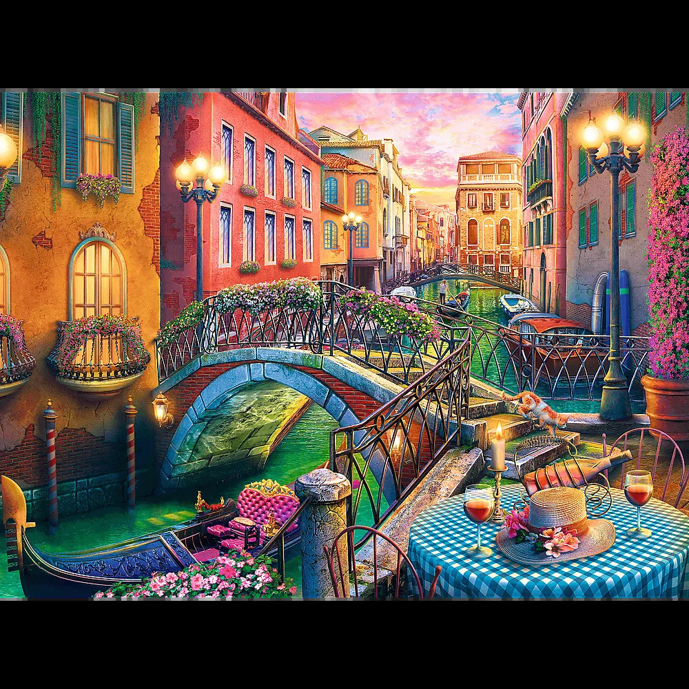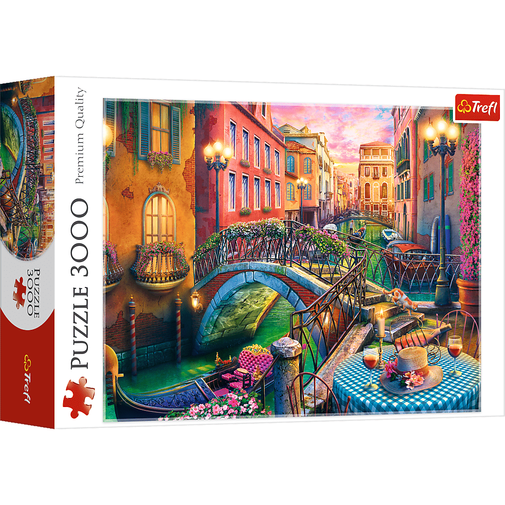 3 000-dielna skladačka s názvom Benátky večer zobrazuje benátsky kanál pri západe slnka. Výrobok je vyrobený z vysoko kvalitných materiálov, s použitím špeciálneho kalandrovaného papiera, ktorý odráža svetlo, vďaka čomu sa ľahšie skladá. Puzzle obsahujúce 3000 dielikov. Rozmer zloženého obrázku: 1160x850 mm.