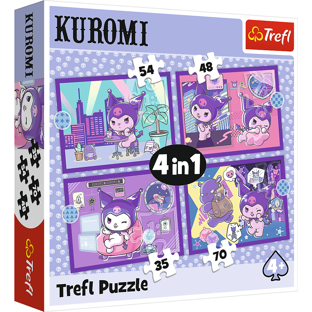 Kuromi's Day je kolekcia štyroch nezávislých puzzle pre deti, navrhnutých s ohľadom na mladých fanúšikov Kuromiiných dobrodružstiev. Po zostavení puzzle vytvoria štyri obrázky, pričom najväčší má rozmery 285 x 205 mm. Rôzny počet dielikov umožňuje zábavu pre mladšie aj o niečo staršie deti. 4 puzzle v 1 balení - obsahujú 35, 48, 54 a 70 dielikov.
