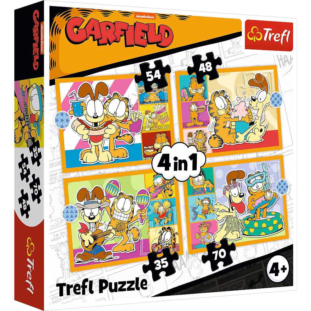 Garfield miluje lasagne je kolekcia štyroch samostatných puzzle pre deti, navrhnutá pre mladých fanúšikov Garfieldových dobrodružstiev.