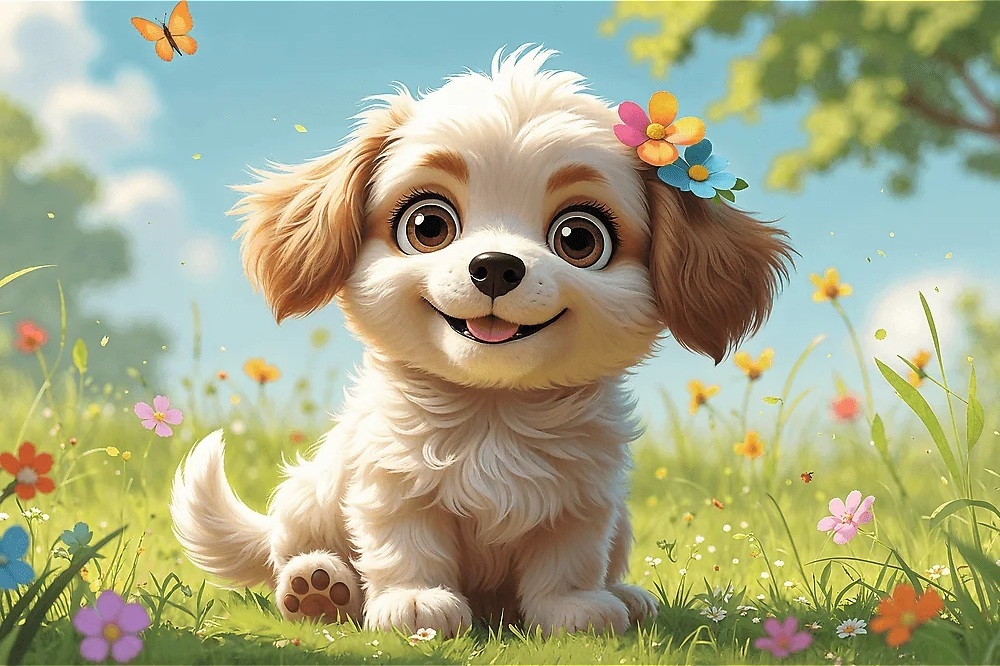 60-dielna skladačka navrhnutá pre mladých fanúšikov zvierat. Skladačka zobrazuje usmiate šteniatko na lúke. Po zostavení má výsledný obrázok rozmery 330 x 220 mm.