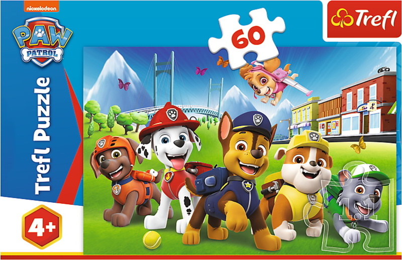 Puzzle s obrázkom s motívom roztomilých, no odvážnych psíkov z Lapkovej Patroly. Obsahujú 60 dielikov. Poskladaním puzzle vznikne obrázok s rozmermi 33 x 22 cm. Vhodné pre deti od 4 rokov