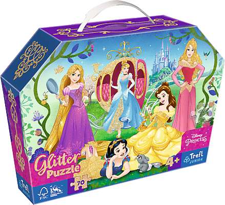Detské puzzle s jemnými zlatými trblietkami, obsahujú 70 dielikov. Balené v dekoratívnom kufríku spraktickou rukoväťou na prenášanie. Poskladaním puzzle vznikne obrázok s rozmermi 410 x 275 mm. Pre deti 4+