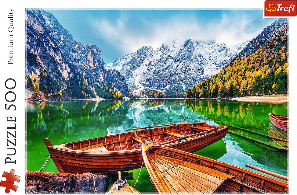 Jazero Braies, Taliansko Rozmer zloženého puzzle 48 x 34 cm Materiál Papier Približná veľkosť dielika 1,8 cm Hmotnosť 0,5 kg Rozmery krabice (balenie) 40 x 27 x 4,5 cm Počet dielikov: 500