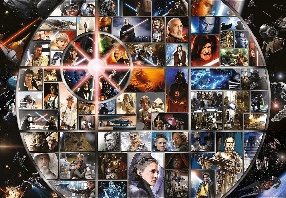 Objavte puzzle Trefl Prime UFT - Star Wars - Universe Epic Collection, ktoré pozostáva z pôsobivých 13 500 dielikov! Zobrazujú koláž s vašimi obľúbenými postavami z vesmíru Star Wars. Čím vynikajú? najhrubší puzzle kartón na trhu, špeciálny, nepravidelný tvar prvkov, puzzle je možné posúvať a otáčať bez strachu, že sa rozpadne. Môžete skombinovať 9 skladačiek (každá po 1 500 kusoch) a vytvoriť tak obrovský obrázok navrhnutý na plagáte alebo popustite uzdu svojej fantázii a vytvorte si vlastnú kompozíciu! Hádanky sú skvelým tréningom pamäti, rozvojom manuálnych zručností, tréningom koncentrácie, trpezlivosti a vnímavosti. Jedinečný darček pre nadšencov puzzle, dospelých a deti od 12 rokov. Celkový rozmer puzzle spojeného spôsobom, ktorý navrhujeme, je 1 985,6 x 1 376 mm*.