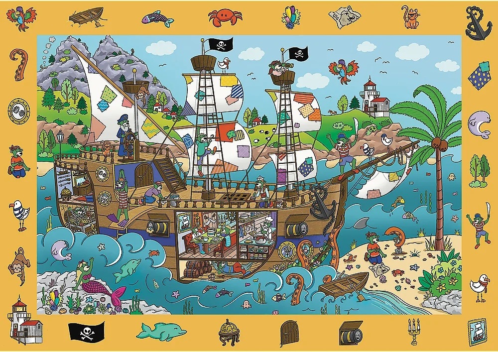 Jedinečné spojenie skladania puzzle a hľadanie motívov v poskladanom obrázku. Puzzle zo série Spy Guy od výrobcu TREFL sľubuje zábavu aj po vložení posledného dielika na svoje miesto. Po poskladaní obrázku sa totiž môžete pustiť do zábavnej hry. Po stranách rámčeka sú vyobrazené najrôznejšie motívy. Tie sa schovávajú aj na poskladanom motíve. Vašou úlohou je nájsť všetky obrázky, ktoré zdobia farebný rámček puzzle.