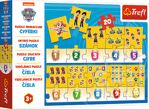 Toto zábavné puzzle s obľúbenými hrdinami naučí vaše deti základným číslam. Podporujú predstavivosť a zvedavosť a sú prispôsobené kognitívnym schopnostiam detí v danom veku. Toto zábavné puzzle s obľúbenými hrdinami naučí vaše deti základným číslam. Vždy skladáte dva dieliky k sebe, na jednom z dielikov je číslo a na druhom postavičky v danom počte. Nakoniec môžete jednotlivé diely spojiť dohromady v jedno puzzle Pre deti od 3 rokov