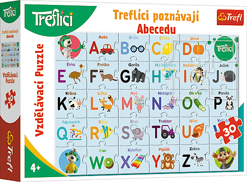 Trefl Vzdelávacie puzzle 30 dielikov - Treflíci spoznávajú abecedu, výrobca Trefl. Výrobok bol vyrobený z vysoko kvalitných materiálov pomocou špeciálneho kalandrovaného reflexného papiera, ktorý uľahčuje stohovanie. Produkt bol vyrobený v Poľsku a na výrobu boli použité ekologické materiály. Pre deti od 4 rokov v českom jazyku
