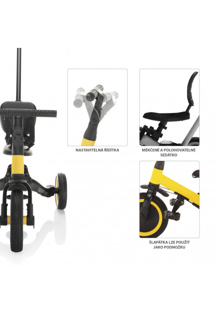 Deti si vybudujú vzťah ku všetkému, čo ich sprevádza od skorého detstva. Doprajte im dlhé roky s jedným kolesom, ktoré ich bude sprevádzať už od 1,5 roka ako trojkolka až do veku 5 rokov ako bicykel. Trojkolka má možnosť voľby používania s vodiacou tyčou alebo bez vodiacej tyče. Variant s vodiacou tyčou oceníte na dlhších výletoch, keď dieťaťu dôjdu sily samostatne šliapať.