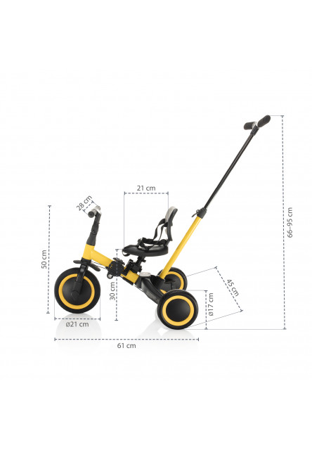 Deti si vybudujú vzťah ku všetkému, čo ich sprevádza od skorého detstva. Doprajte im dlhé roky s jedným kolesom, ktoré ich bude sprevádzať už od 1,5 roka ako trojkolka až do veku 5 rokov ako bicykel. Trojkolka má možnosť voľby používania s vodiacou tyčou alebo bez vodiacej tyče. Variant s vodiacou tyčou oceníte na dlhších výletoch, keď dieťaťu dôjdu sily samostatne šliapať.