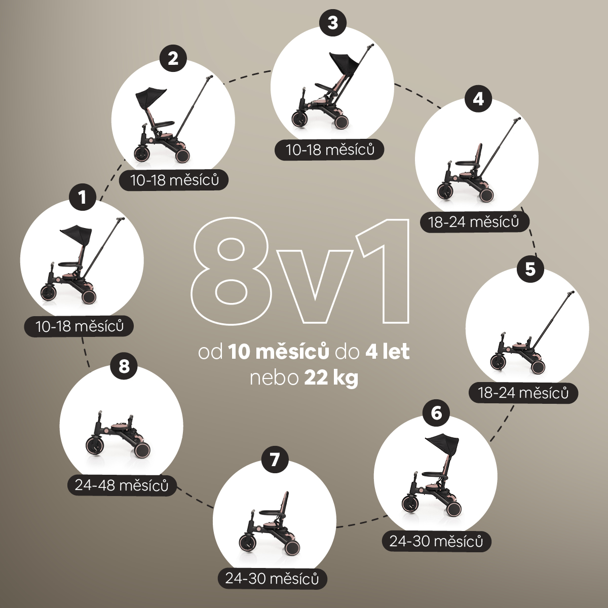 Hľadáte hravejšiu alternatívu k detskému kočíku? X Trike Pro je multifunkčná trojkolka, ktorá rastie s vaším dieťaťom od 10 mesiacov až do 4 rokov. Pomáha rozvíjať rovnováhu a koordináciu pre budúcu jazdu na odrážadle aj bicykli. Nechajte svojho malého prieskumníka objavovať svet na troch kolesách, získavať istotu v pohybe a osvojiť si základy samostatnej jazdy.