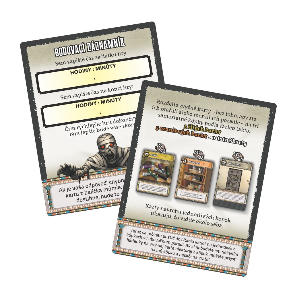 Vydali ste sa na svoj vysnívaný výlet do Egypta za jeho starovekými pamiatkami. Prehliadka jednej z pyramíd nabrala trochu iný smer, než ste čakali. Nešťastnou náhodou ste zostali uväznení v tajnej miestnosti vo vnútri pyramídy! Ako sa teraz dostať von? Dokážete vyriešiť hieroglyfické hádanky a zlomiť prekliatie sfingy skôr než vás dostane múmia? Únikovka je kartovou variáciou na populárne únikové hry, pri ktorých sa skupina priateľov alebo kolegov (možno hrať aj ako jeden hráč) nechá zamknúť do miestnosti plnej rébusov a snaží sa z nej v časovém limite uniknúť preč. Aj kartová hra Únikovka je plná rébusov, ktoré musíte vyriešiť, pokiaľ chcete uspieť. A uspejete alebo zlyháte všetci - Únikovka je totiž kooperatívna hra, teda hrajú všetci hráči spolu a nie proti sebe. Hráči spoločne prechádzajú balíčkom kariet, čím sa im odhaľujú nové pravidlá a nové rébusy. Niektoré karty predstavujú hlavolamy, iné nápovede a ďalšie predmety, ktoré sa hodia neskôr. Zvládnete vyriešiť unikátne rébusy a uniknúť z miestnosti včas? Upozornenie: Hry Únikovky môžete hrať plnohodnotne iba raz (pri opakovanom hraní už budete poznať riešenie rébusov). Darujte ju po odohraní priateľom a porovnajte si svoje výsledky. Hra Únikovka - Záhada Eldoráda obsahuje: 60 veľkých kariet.