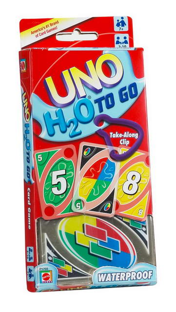 Vezmi so sebou na cesty túto cestovnú verziu hry UNO! Pevné plastové karty sú odolné voči vode a zábavu si s nimi môže užiť každý, a to doma aj vonku na cestách. UNO H2O Na cesty obsahuje aj praktickú karabínu, ktorá karty udrží pri sebe a dá sa pripojiť k plážovej taške, batohu alebo ku kempovacej výbave. Teraz budete pripravení hrať UNO, kedykoľvek sa vám zachce! Obsahuje 108 kariet UNO H20 Na cesty. Vhodné pre hráčov od 7 rokov. Zbieraj body a vyhraj, a to pokojne aj na cestách.
