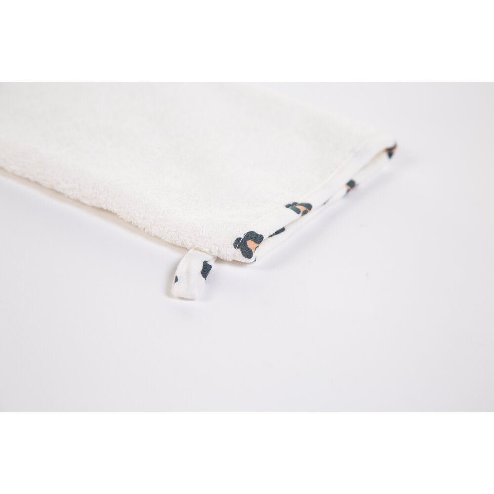 Pihe-puha leopárd mintás fürdőlepedő, hozzá illő arctörlővel kisbabádnak. Mindkét termék egy extra vastag, erősen nedvszívó és ultralágy frottírszövetből készült. A fürdőlepedő ideális a baba gyors szárítására fürdés után, hogy véletlenül se fázzon meg. A fürdőlepedő gyönyörű kis leopárdmintával készül. Mind a lepedő, mind a törölköző belseje ultralágy, nedvszívó fehér frottír pamutból készül.