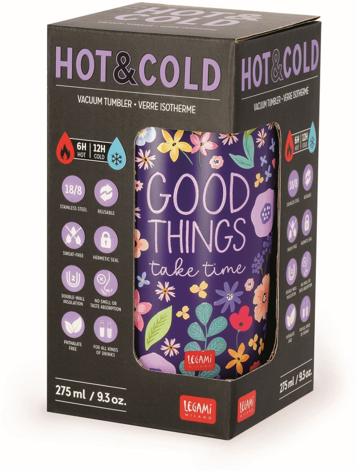 Vákuový termohrnček Legami Hot & Cold s objemom 275 ml a nápaditým dizajnom, na ktorý sa môžete spoľahnúť. Tento hrnček so vzduchotesným viečkom zázračne udrží vaše studené nápoje teplé 12 hodín a kávu a bylinkové čaje horúce 6 hodín.