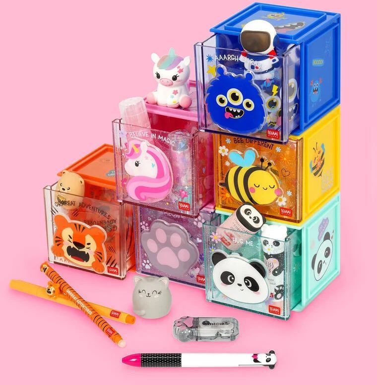 Daj to na seba, vymieňaj, preusporiadaj... a tak stále dokola! Stohovateľný box na stôl Legami Stationery Box - Tiger sa skvele hodí k ostatným roztomilým boxíkom a spoločne vytvorí dokonalý multifunkčný organizér na všetky tvoje písacie potreby. Nazbieraj ich všetky – čím viac zásuviek, tým viac kombinácií!
