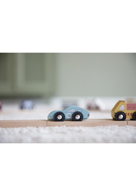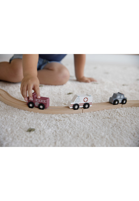 Dřevěné užitkové a záchranné vozy jsou oblíbeným doplňkem hodí k Little Dutch dřevěné vláčkodráze XXL. Vozidla jsou vhodná pro jízdu po kolejích a poskytují tak asistenci tam, kde jsou ve městě potřeba. Dřevěné kolejnice nejsou součástí setu.